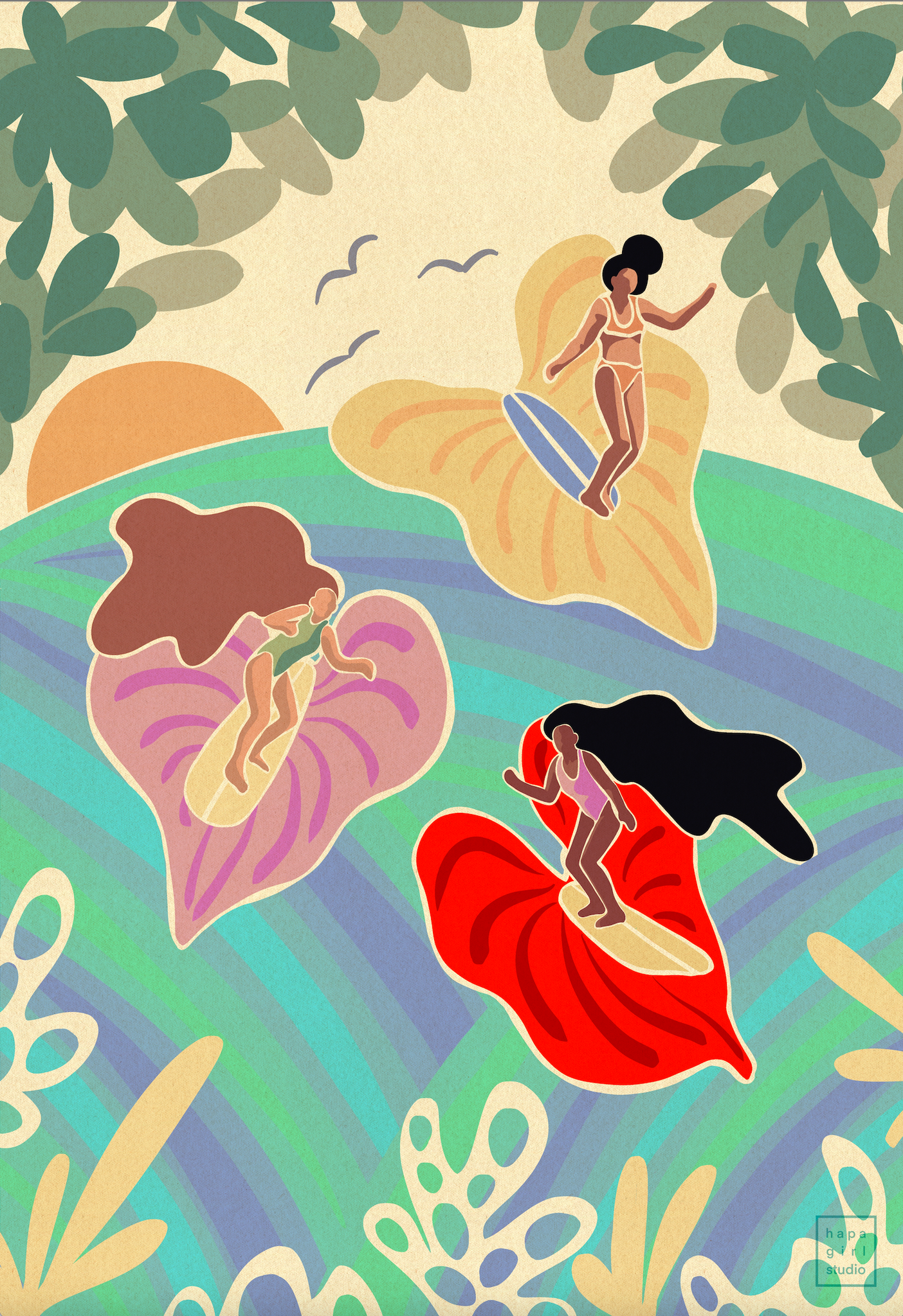 With vibrant colors and bold strokes, this quintessential pop art is inspired by the daily life of a hapa girl in the islands.