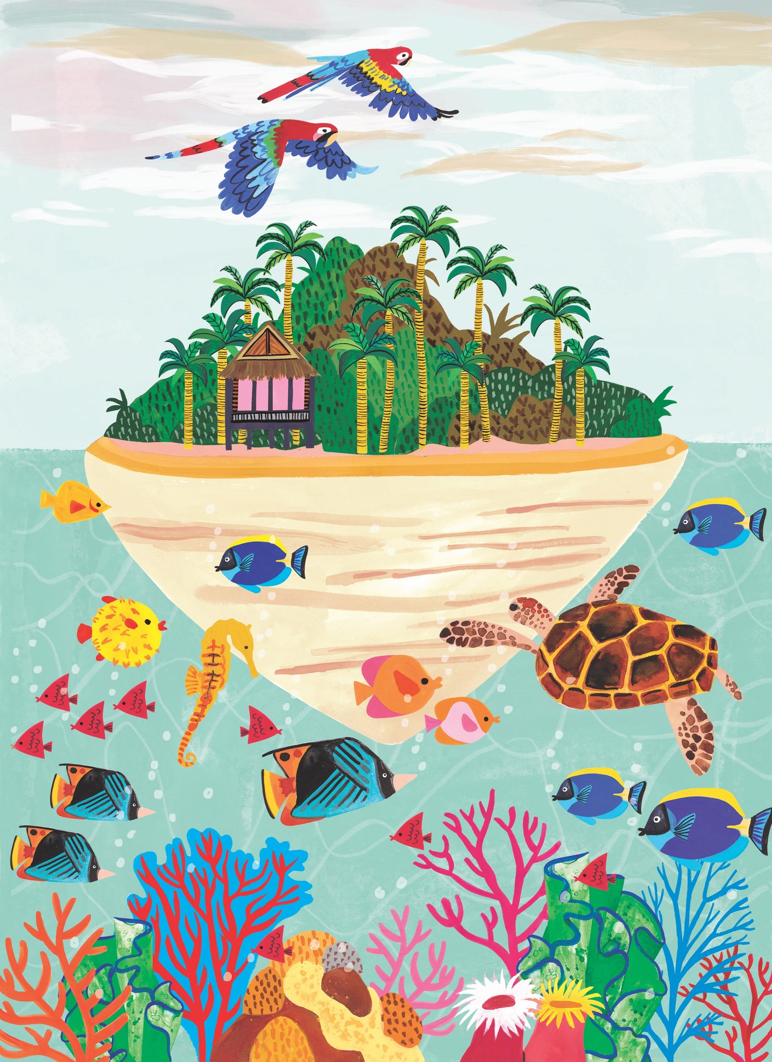 Take a trip to this tropical island and talk about the importance of caring for our friends in the sea and sky.